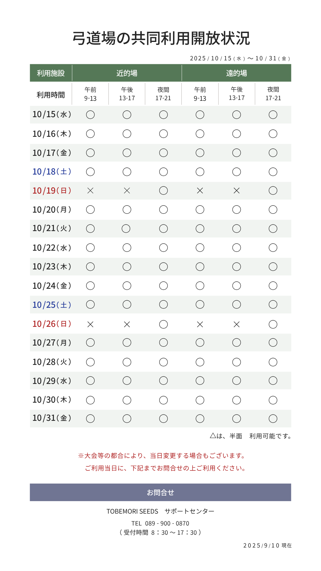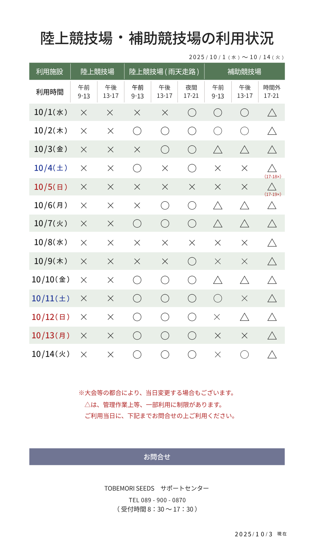 【10/3更新 各施設 10月の「共同利用」開放状況】