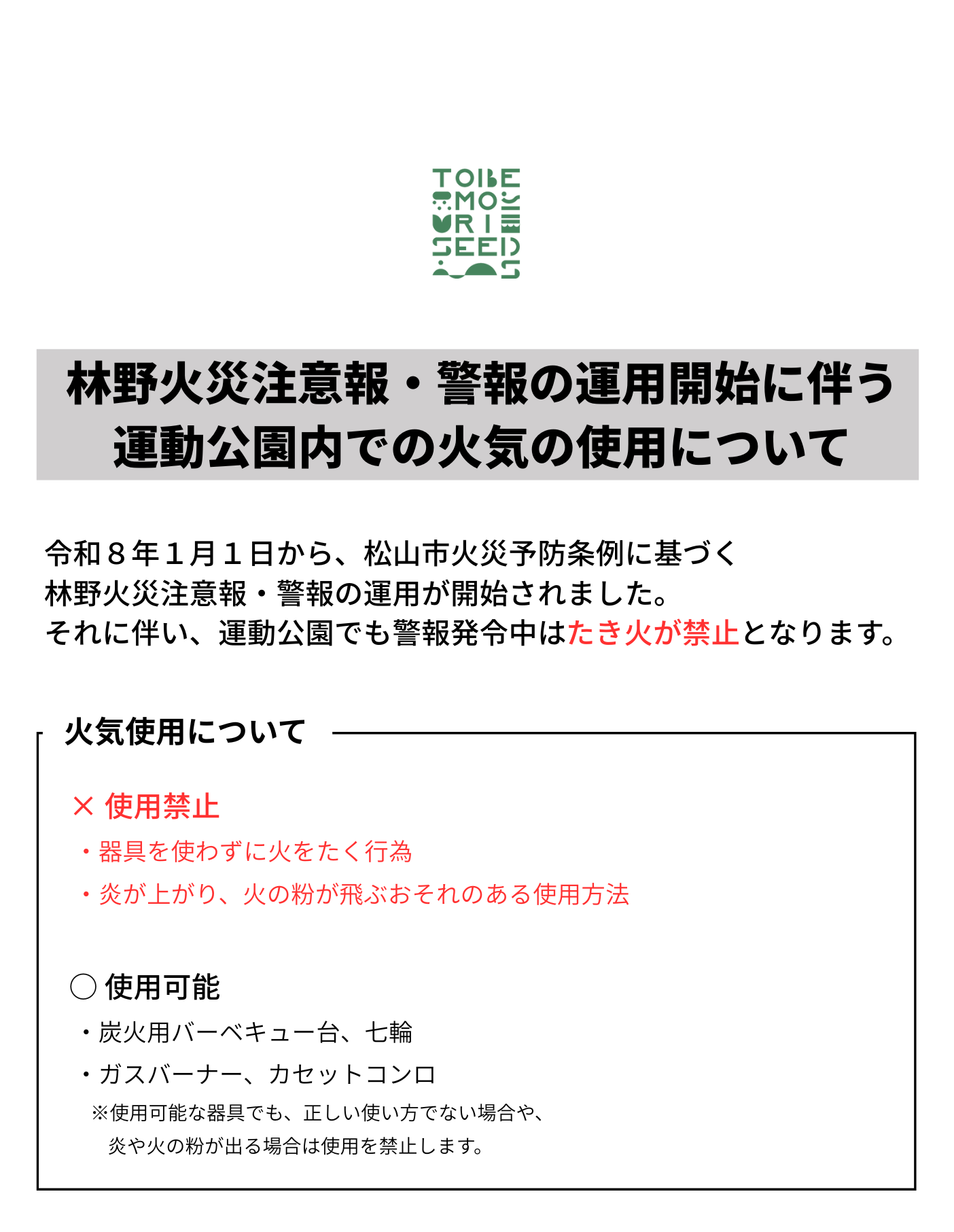 林野火災注意報・警報の運用開始に伴う火気の使用についてのお知らせ