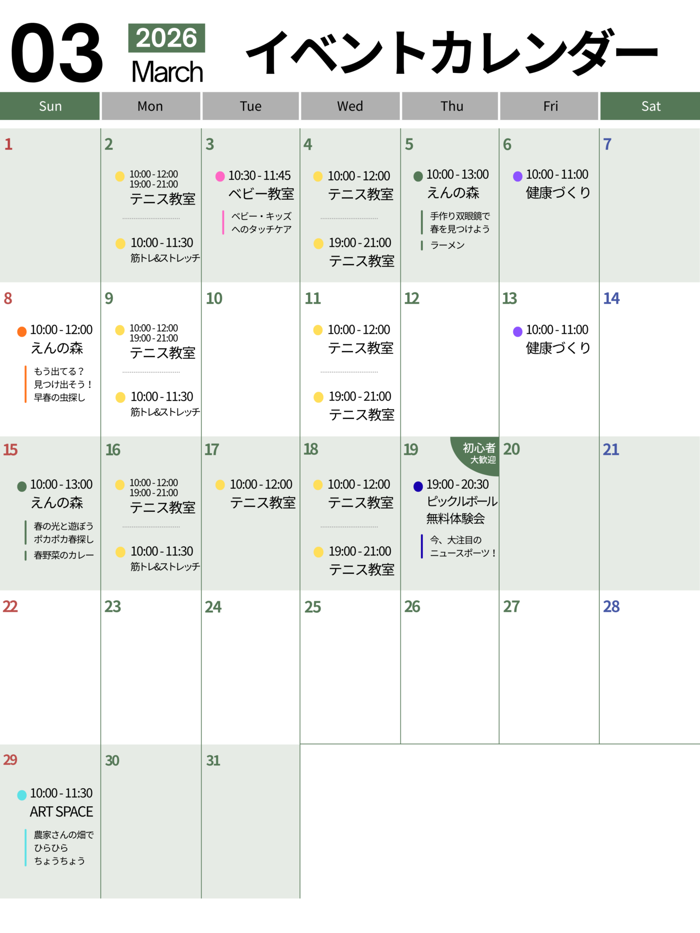 テニス教室と筋トレ&ストレッチ教室を開催中。大人のための健康習慣、はじめてみませんか。詳細はこちら