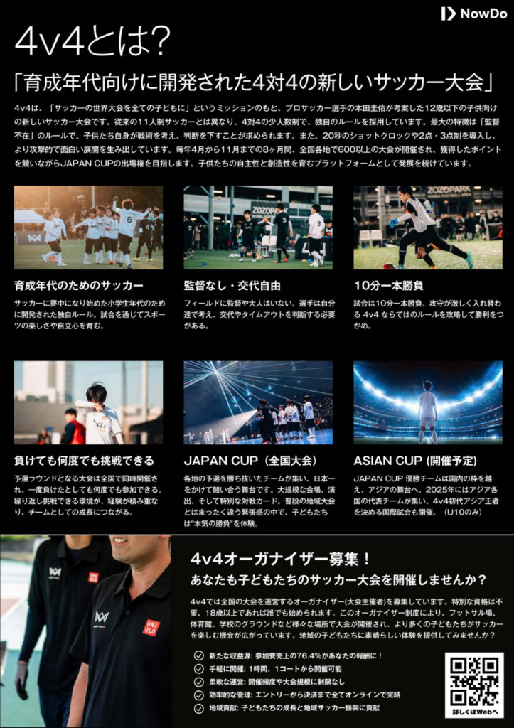 育成年代である小学生が参加できる4対4のサッカー大会