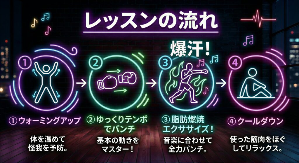 アップテンポな音楽のリズムに合わせて、思いっきりパンチを打ち込みましょう!